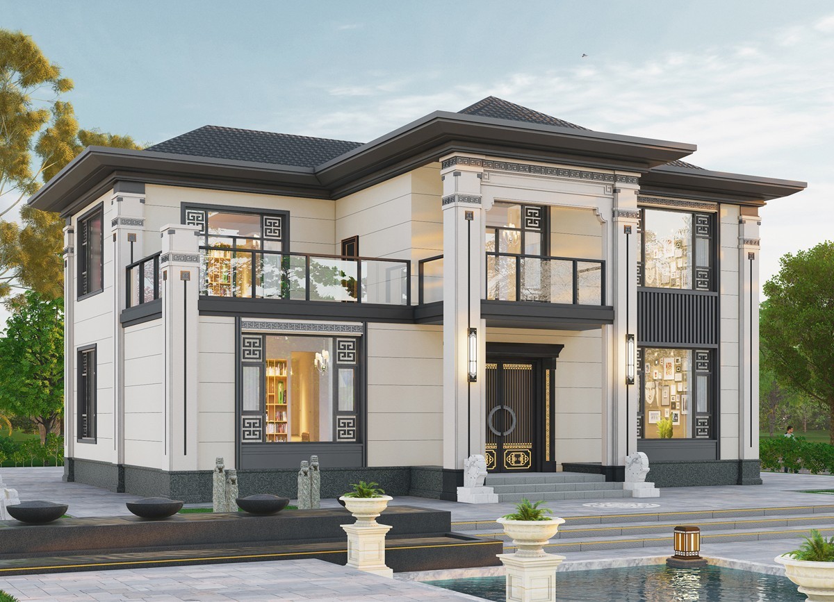 鹰潭011 两层新中式(15.43x12.66米)-【易设计】